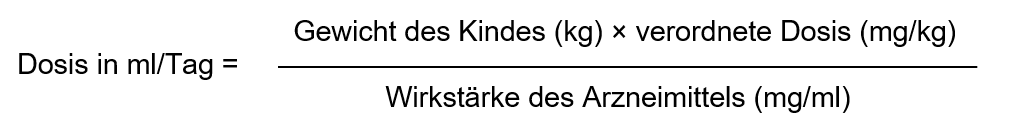 Dosierung (entsprechende Dosis in ml/Tag) |