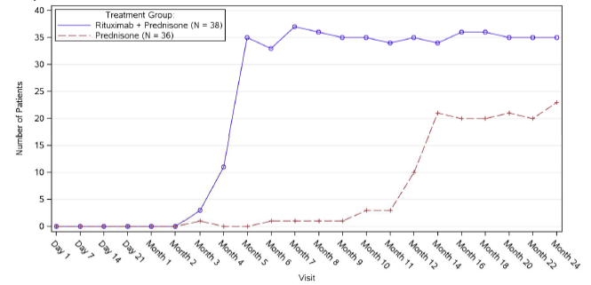 Für den Fall eines Rückfalls können Patienten 1 000 mg intravenös erhalten. Das medizinische Fachpersonal sollte auf Basis einer klinischen Bewertung auch in Erwägung ziehen, die Glucocorticoid-Dosis des Patienten wieder aufzunehmen oder zu erhöhen.