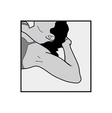Bitten Sie die Anwenderin, sich mit dem Rücken auf die Untersuchungsliege zu legen und den weniger beanspruchten Arm am Ellenbogen nach außen abzuwinkeln, sodass sich ihre Hand unter dem (oder so nah wie möglich am) Kopf befindet (Abbildung 1).