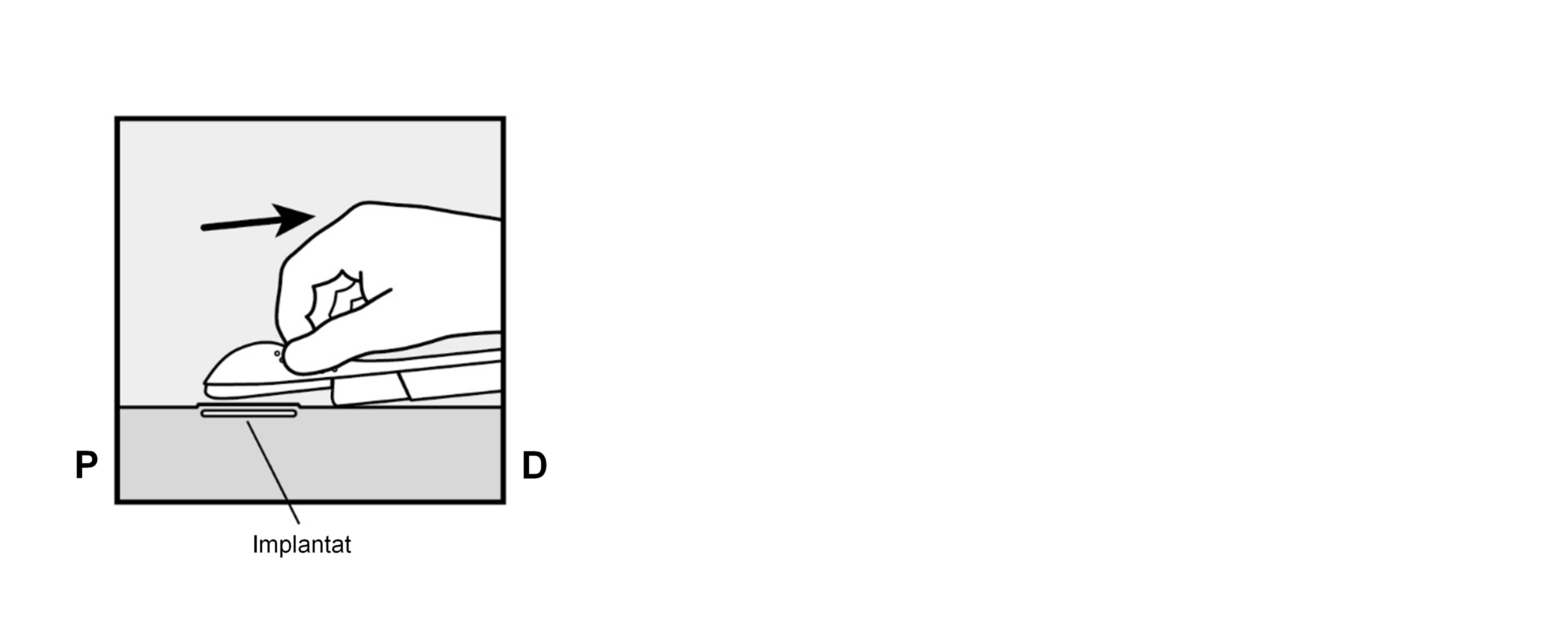 Das Implantat muss subkutan direkt unter die Haut eingelegt werden (siehe Abschnitt 4.4).