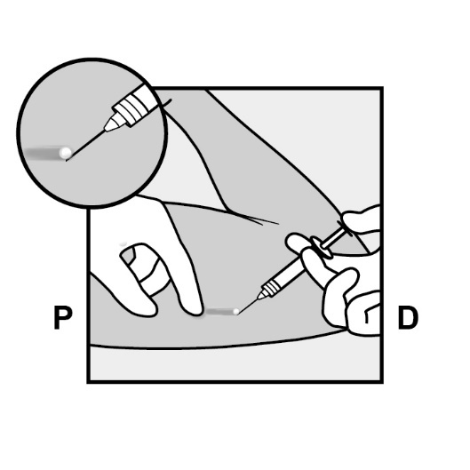Durchstechen Sie die Haut mit der Nadelspitze in einem leichten Winkel von weniger als 30° (Abbildung 5a).