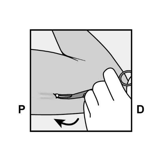 Halten Sie den Applikator in seiner Position, die Nadel bleibt dabei in ihrer vollen Länge eingeführt (Abbildung 7). Falls notwendig, können Sie Ihre freie Hand dazu benutzen den Applikator zu stabilisieren.