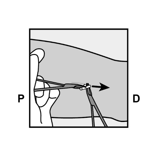 Spannen Sie mit Ihrer freien Hand die Haut um die Einlagestelle in Richtung Ellenbogen (Abbildung 4).
