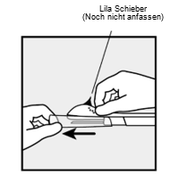 Wurde der lila Schieber zu früh ausgelöst, wiederholen Sie das Verfahren mit einem neuen Applikator.