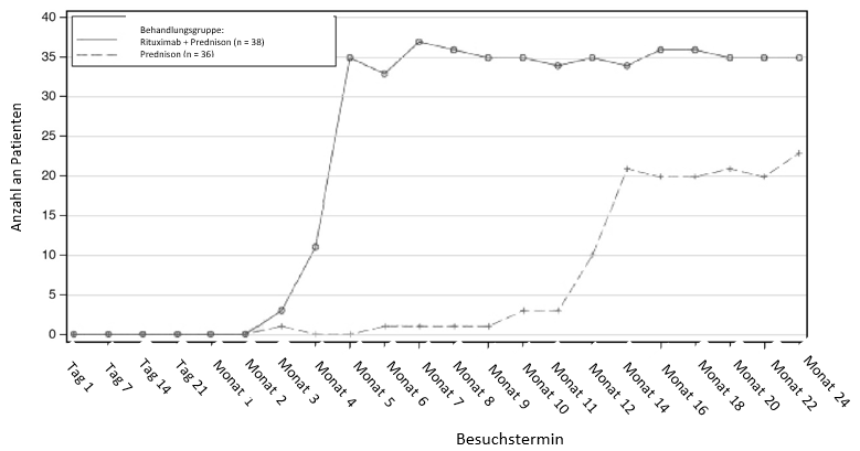 Nach Induktion einer Remission mit anderen Standard-Immunsuppressiva, sollte eine Erhaltungstherapie mit Ruxience innerhalb von 4 Wochen nach der Krankheitsremission eingeleitet werden.