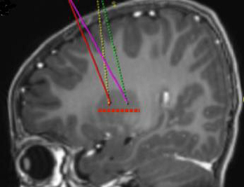 Die Infusionskanüle wird mithilfe von stereotaktischen Instrumenten auf der Grundlage der geplanten Zielkanäle an den Zielpunkt im Putamen gesetzt. Es ist wichtig zu beachten, dass die Infusionskanüle für jedes Putamen getrennt gesetzt und die Infusion für jedes Putamen getrennt durchgeführt wird.