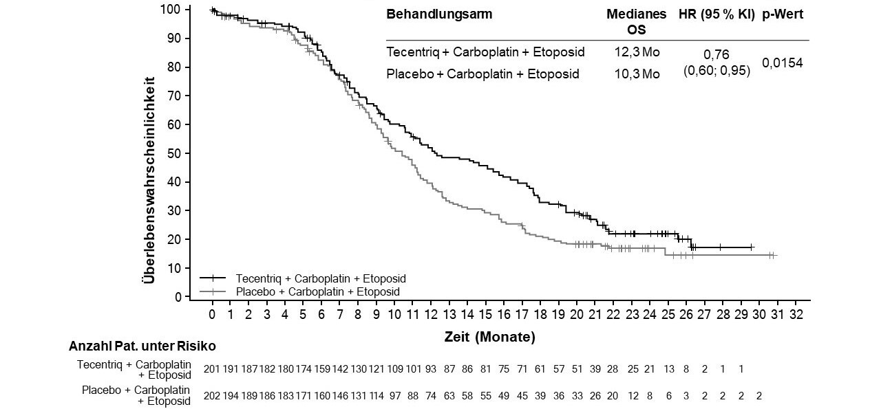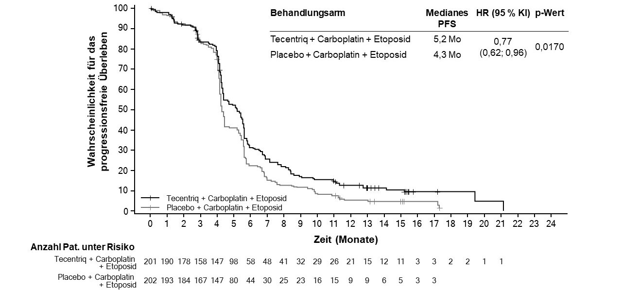 Tecentriq wird angewendet in Kombination mit Carboplatin und Etoposid bei erwachsenen Patienten zur Erstlinienbehandlung des SCLC im fortgeschrittenen Stadium (extensive-stage small cell lung cancer, ES-SCLC) (siehe Abschnitt 5.1).