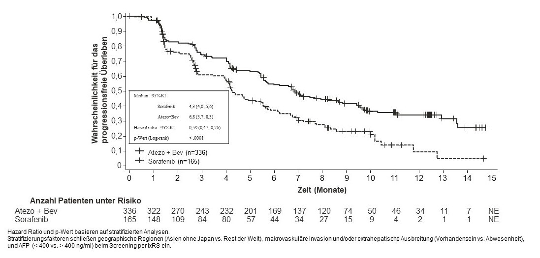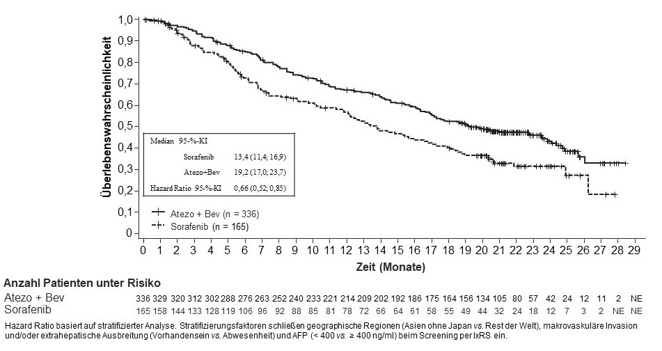 ‡ Stratifiziert nach geographischer Region (Asien ohne Japan vs. Rest der Welt), makrovaskulärer Invasion und/oder extrahepatischer Ausbreitung (Vorhandensein vs. Abwesenheit) und Baseline-AFP (< 400 vs. ≥ 400 ng/ml) | ||