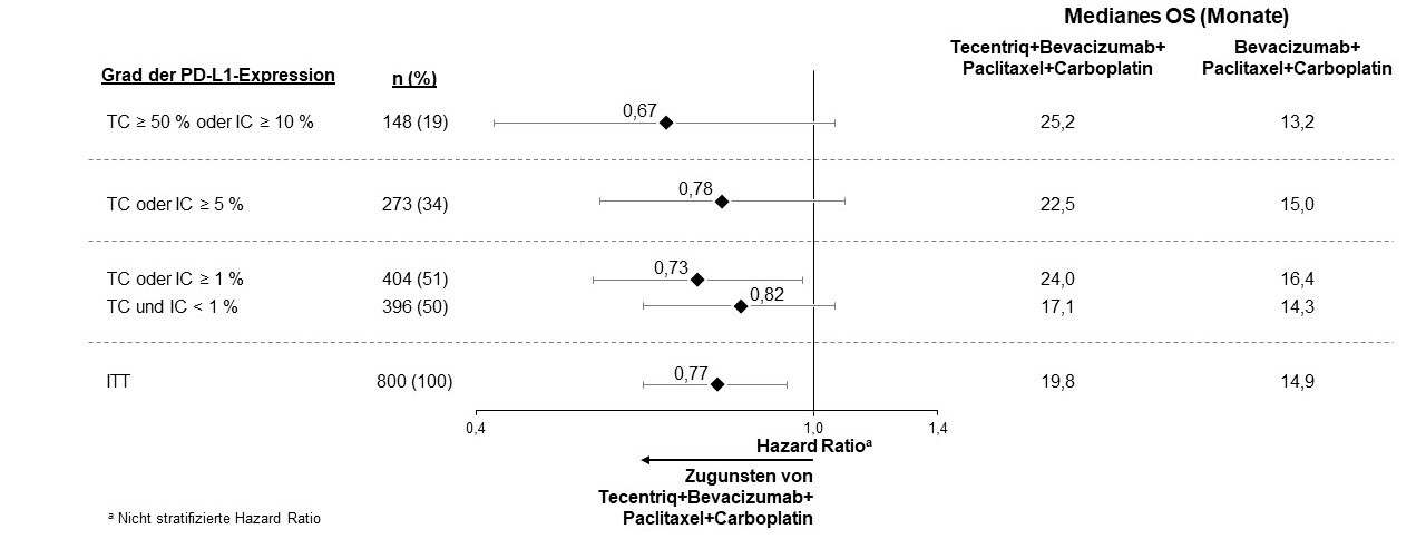 Abbildung 21: Kaplan-Meier-Kurve des OS in der ITT-Population (IMbrave150 aktualisierte Analyse)