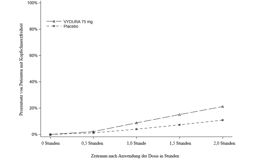 In allen 3 Studien war die Inzidenz von Photophobie und Phonophobie 2 Stunden nach der Einnahme von VYDURA 75 mg im Vergleich zu Placebo reduziert.