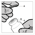 Die Durchstechflasche ist nur zur Einmalentnahme bestimmt. Der Inhalt einer Ampulle muss intramuskulär sofort injiziert werden, nachdem er in die Spritze aufgezogen wurde. Nach dem Entfernen der Kunststoffkappe (A) nicht den Metallring (B) oder die Bördelkappe (C) entfernen.