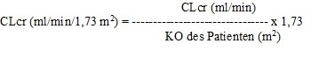 Die Kreatinin-Clearance wird wie folgt an die Körperoberfläche (KO) angepasst:
