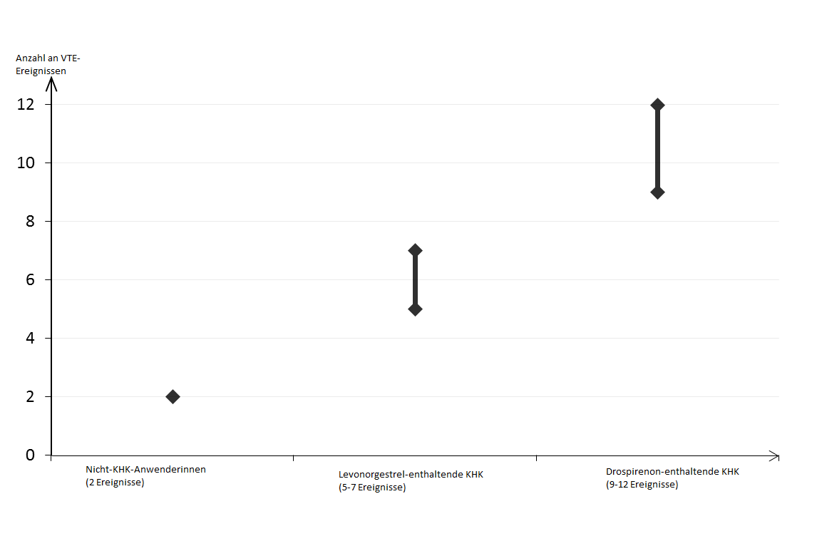 Die Anzahl an VTE pro Jahr unter niedrig dosierten KHK ist geringer als die erwartete Anzahl während der Schwangerschaft oder in der Zeit nach der Geburt.