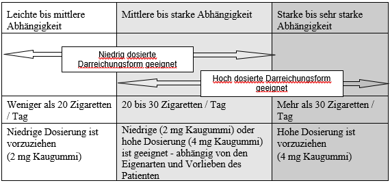 Die Anfangsdosis sollte sich an der Nicotinabhängigkeit des einzelnen Patienten orientieren.